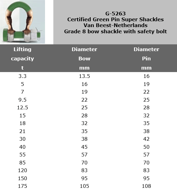 Certified Super Shackles of the VAN BEEST Netherlands, type Green Pin (Green Pin) with Safety Pin
