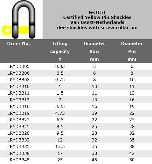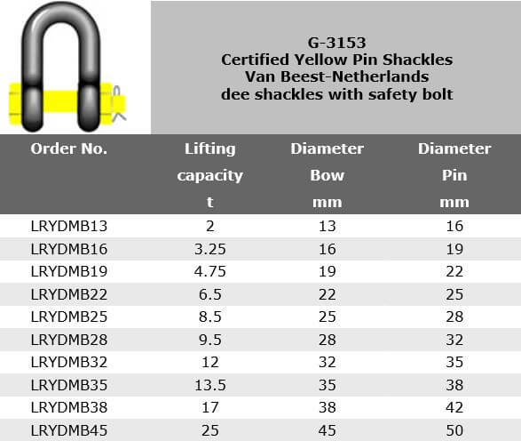 G-3151 Yellow Pin Shackles, Van Beest-Netherlands