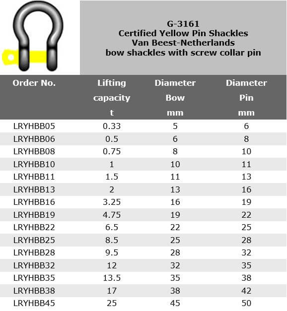 G-3161 Yellow Pin Shackles, Van Beest-Netherlands