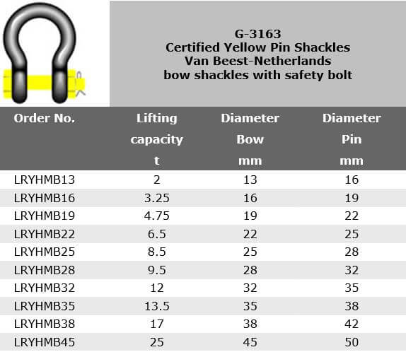 G-3163 Yellow Pin Shackles, Van Beest-Netherlands